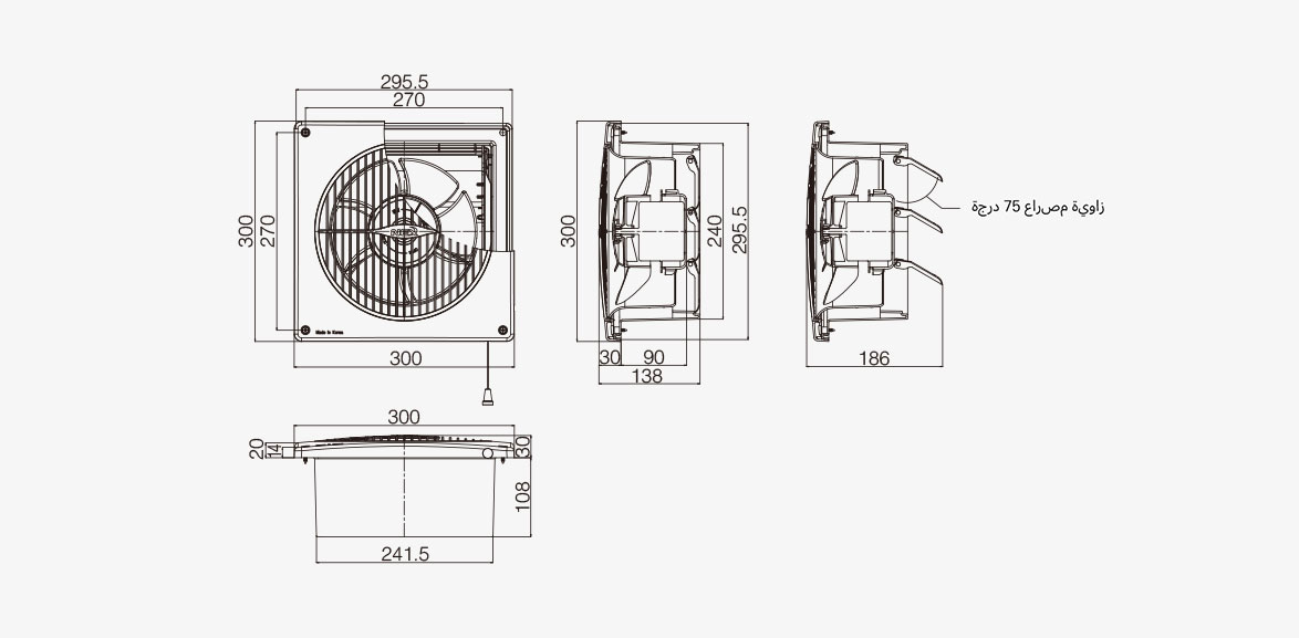 - مصراع ضغط الرياح التلقائي (زاوية مصراع 75 درجة)