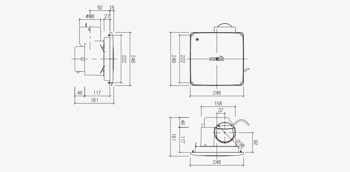 천장 설치 시 100Ø PVC 파이프와 엘보를 사용