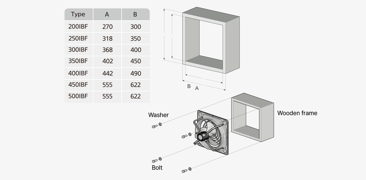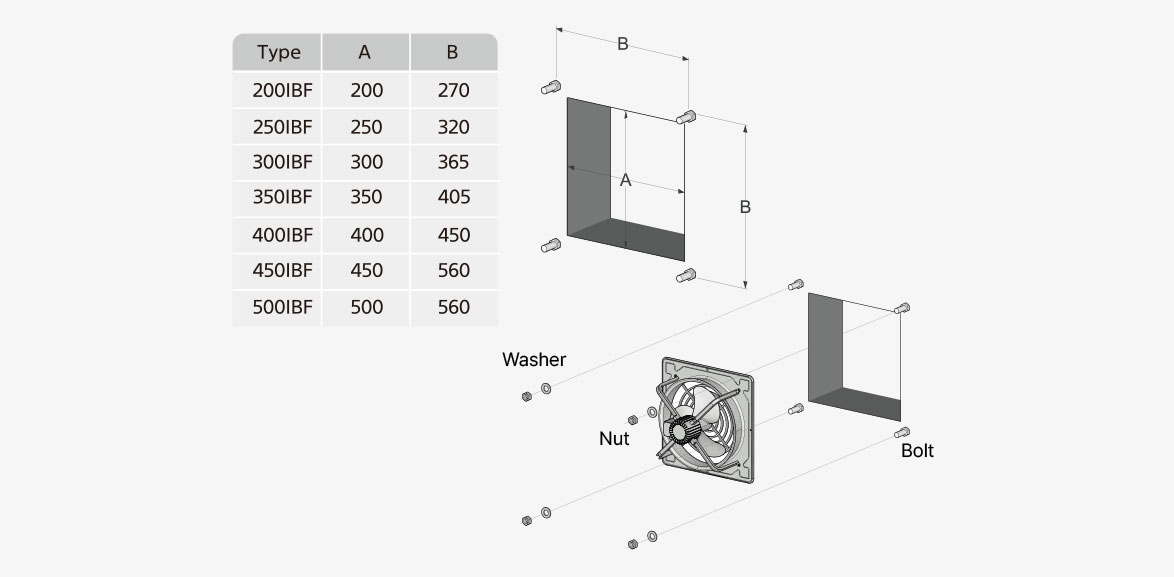 • 2.Fit the designated hole on the ventilator body and secure it with bolts, nuts, and washers.