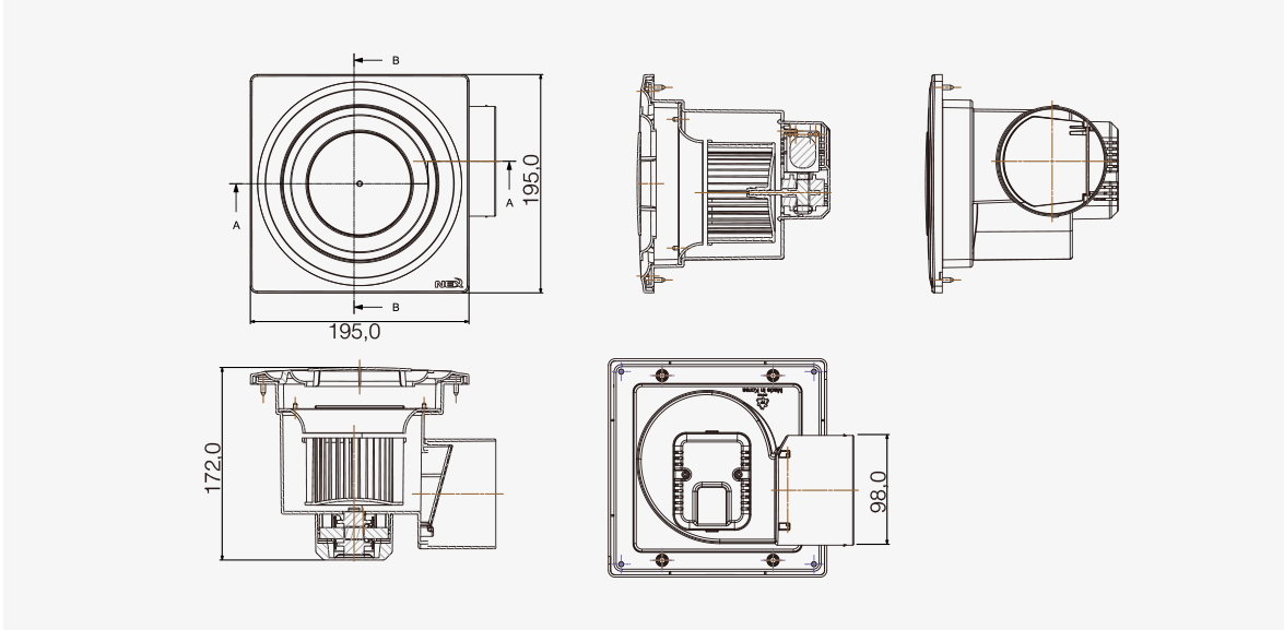 3.Use a 100Ø PVC pipe and elbow when installing on the ceiling