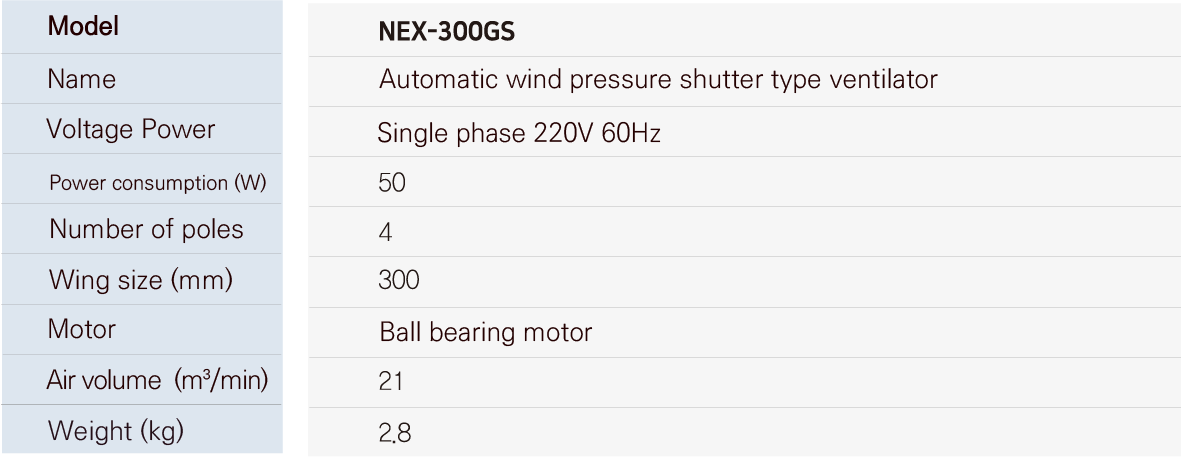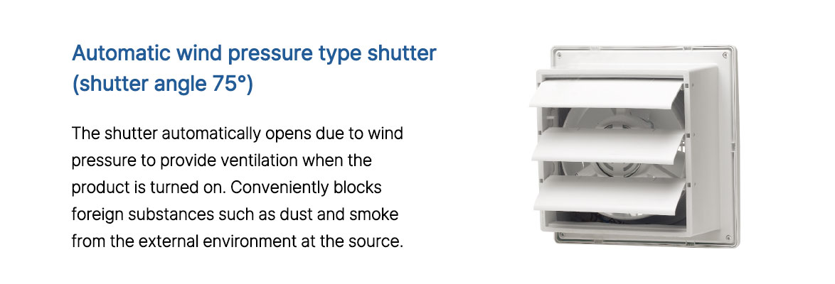 - Automatic wind pressure type shutter (shutter angle 75°)