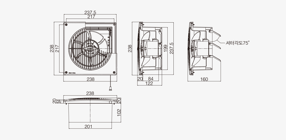 - Automatic wind pressure type shutter (shutter angle 75°)