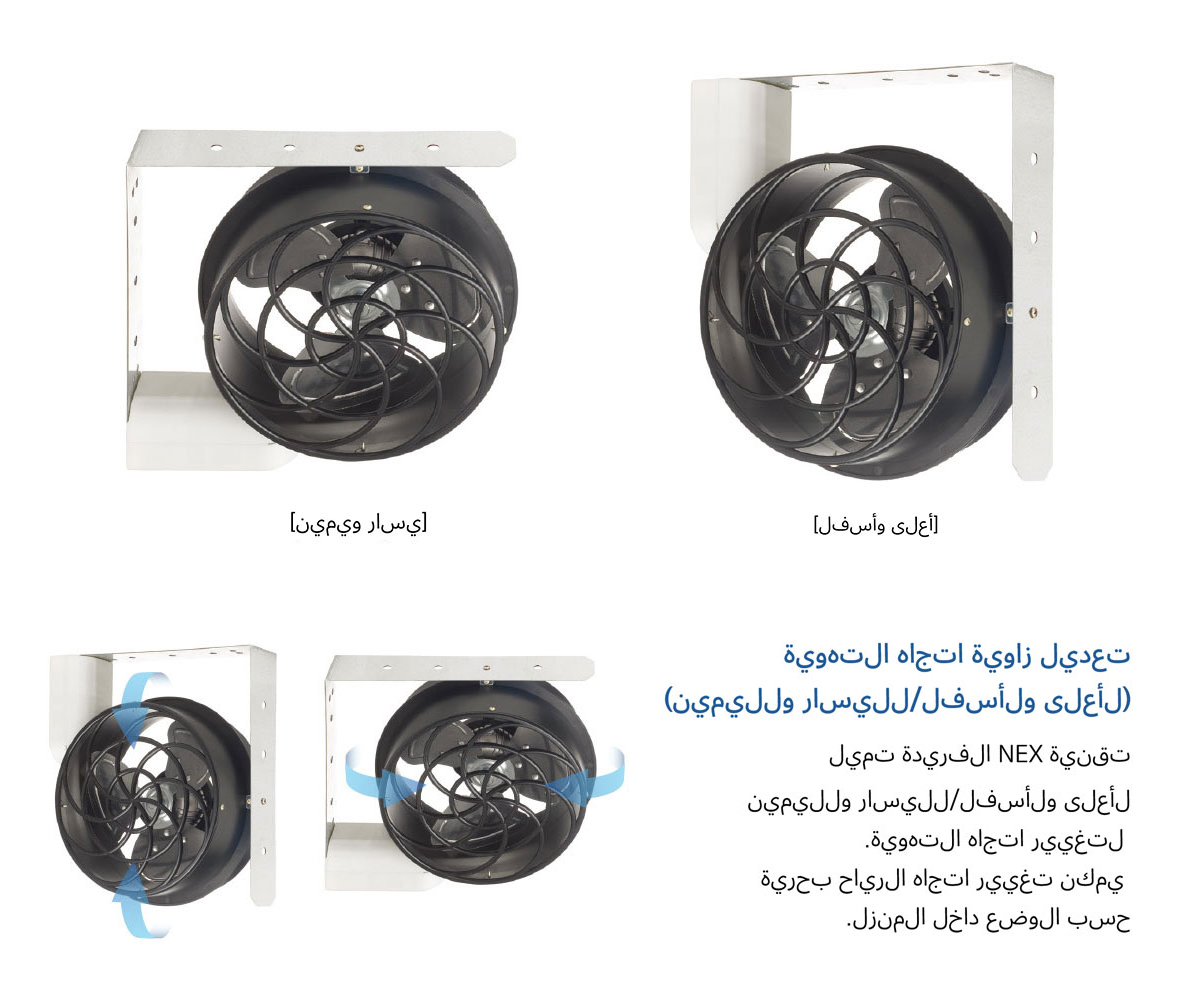 • مروحة عائمة لأعلى ولأسفل/لليسار ولليمين