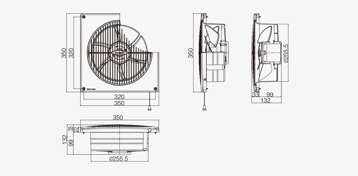 قياسات التثبيت الموصي بها 330x320 أو 320Ø(مم)