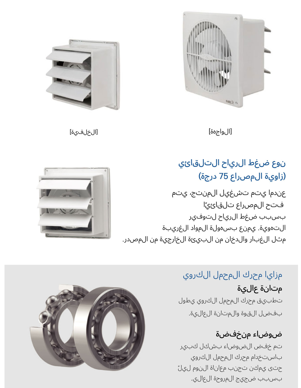 - مصراع ضغط الرياح التلقائي (زاوية مصراع 75 درجة)